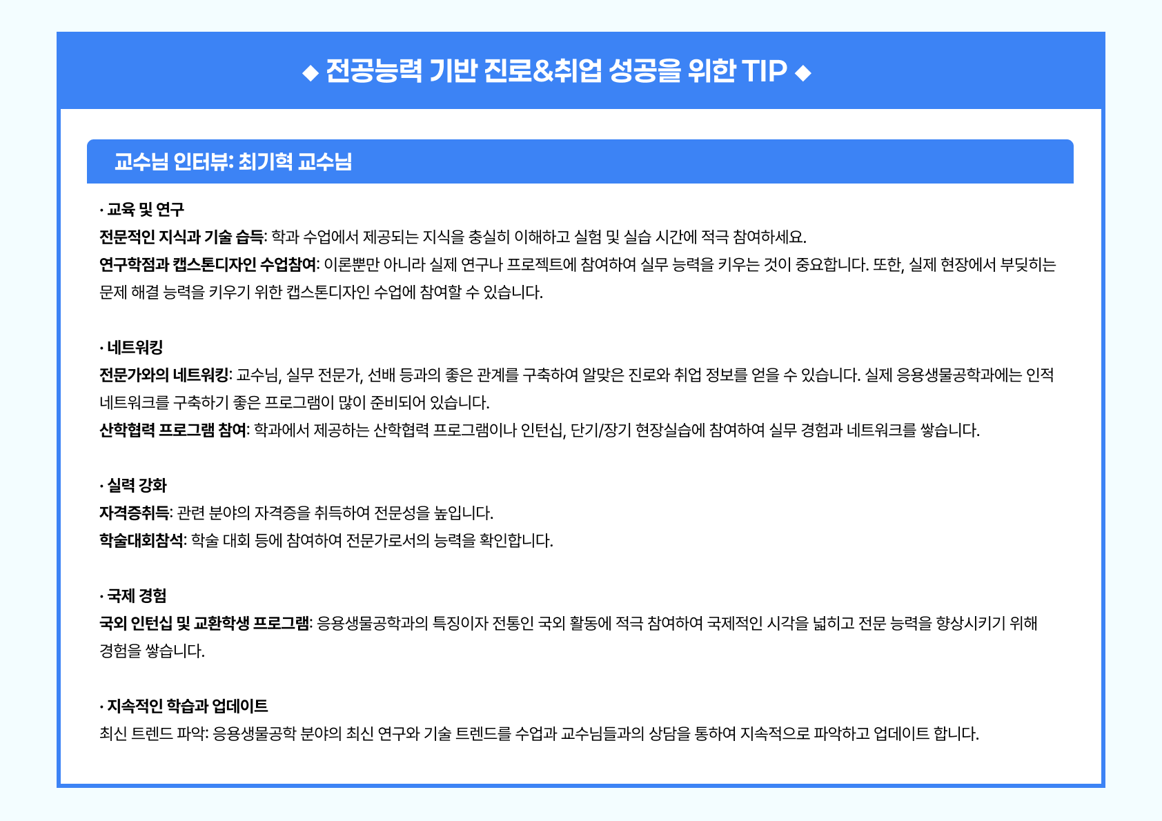 학과별 맞춤형 진로특강
